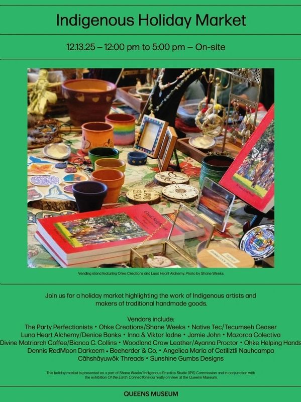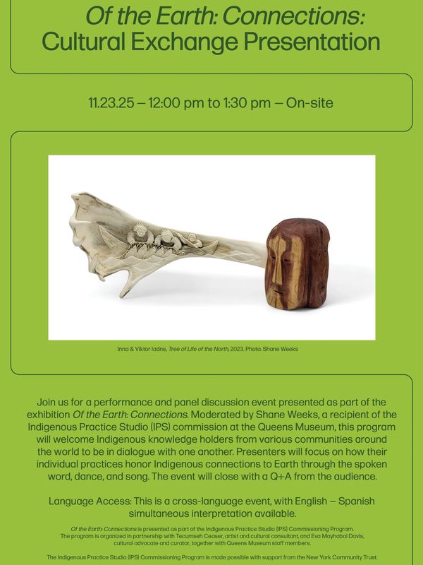 Of The Earth: Connections (OTEC) makes its debut as an artistic exhibition at the Queens Museum in Queens, NY. OTEC's creator, Shane Weeks, was granted the Indigenous Practice Studio Residency at the Queens Museum in 2025. OTEC highlights the connection we, as human beings have to the Earth as felt by artists from Indigenous communities around the world. This commands attention to our connection, disconnection, and reconnection to creation. This project features multidisciplinary art from multicultural contributors that speak to their lineage’s understanding of the human connection to the environment.